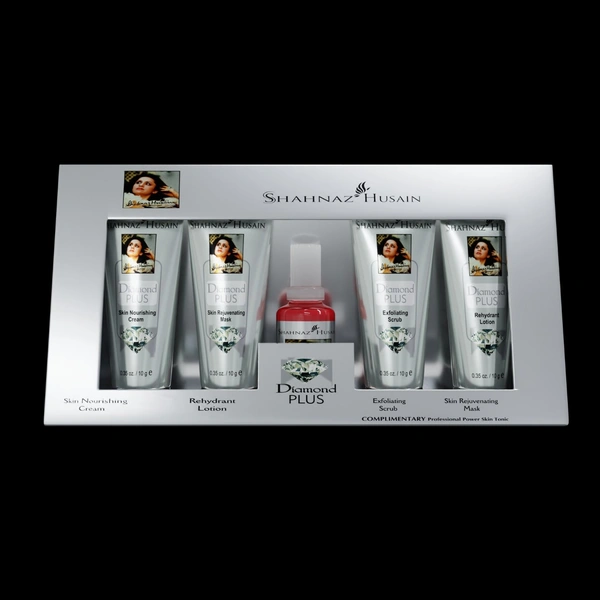 Shahnaz Husain Diamond Skin Revival Kit 40GM - The Diamond Skin Revival Kit is a powerful age-control formula for timeless beauty. Comprising of Diamond Plus Scrub, Diamond Plus Nourishing Cream, Diamond Plus Mask and Diamond Plus Rehydrant Lotion, it purifies the skin. This Diamond Skin Revival Kit regenerates new skin cells and enhances skin beauty. The Diamond Kit ensures a healthy radiant skin.