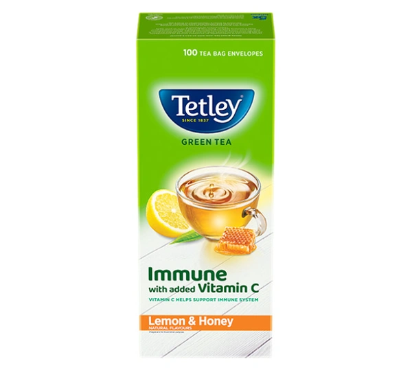 Tetley Green Tea Bags Lemon & Honey Flavored - Immune with Added Vitamin C : The delightful combination of lemon zing and honey with anti-oxidant rich green tea now comes with added Vitamin C that helps support immune system